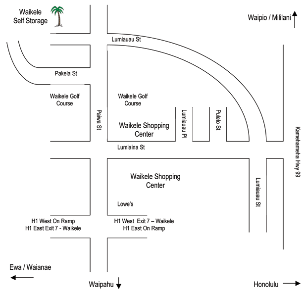 - Waikele Self Storage is at the end of Pakela Street